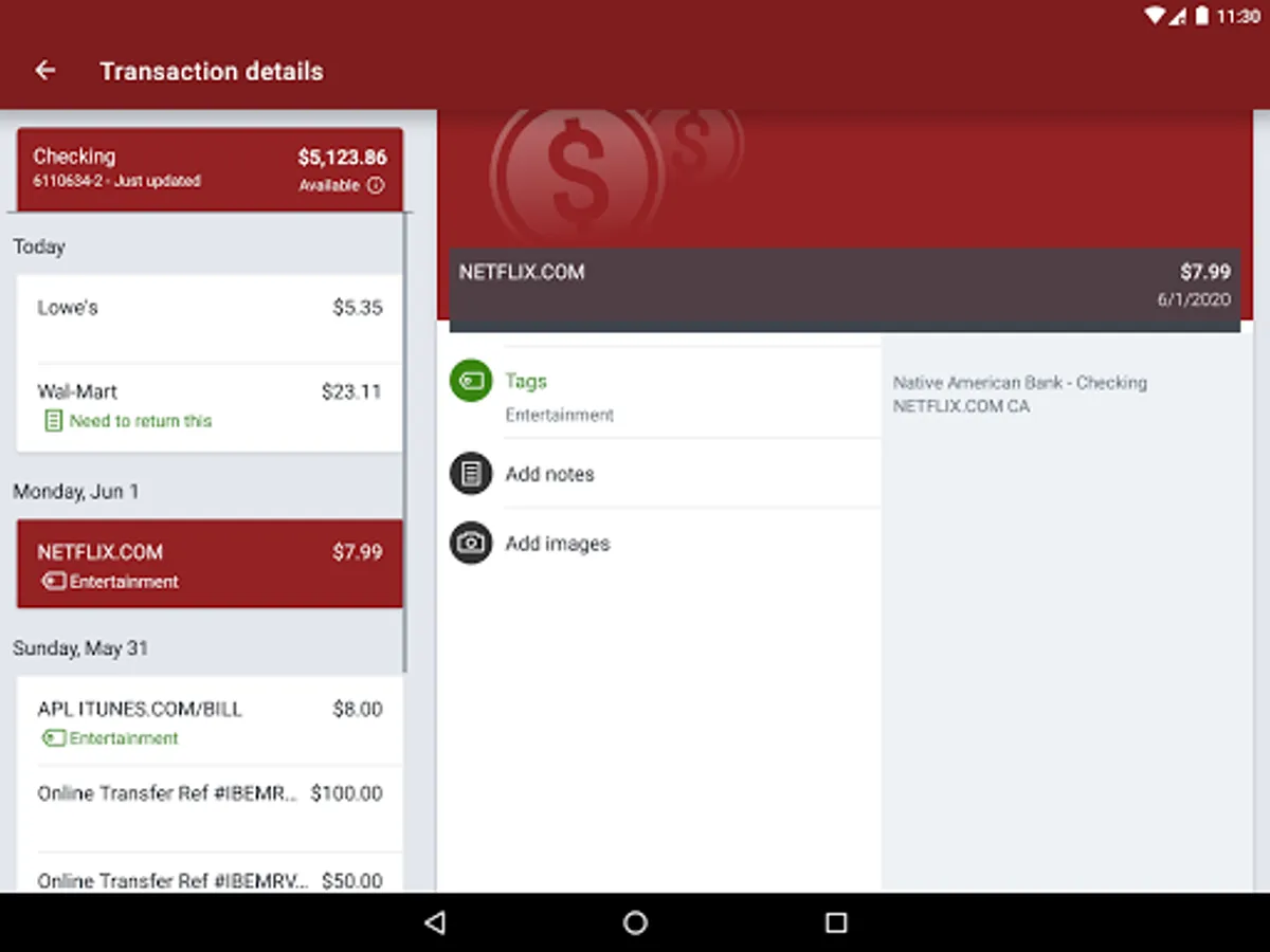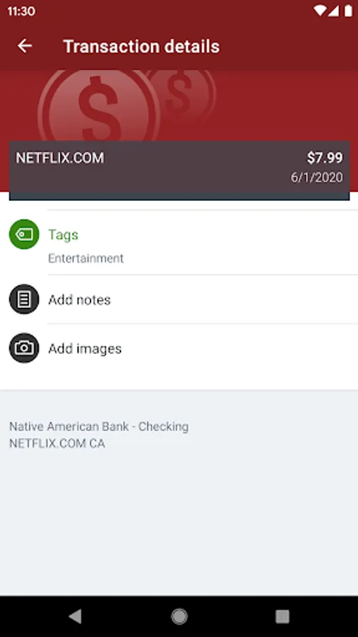 Keep your transactions organized by allowing you to add tags, notes and photos of receipts and checks.