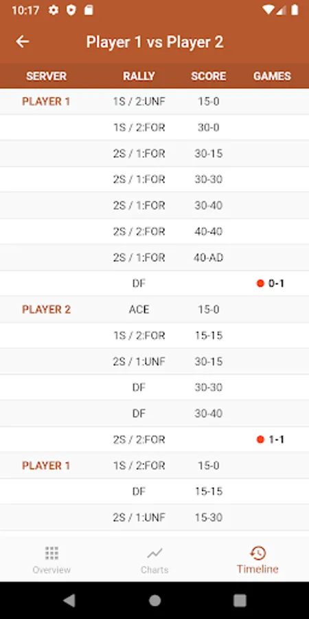 Tennis Tracker is the simplest solution to record your match statistics and analyze them later on. This Tracker maintains the match score every time you input a new shot et allows you to check the statistics whenever you want, including during the match!