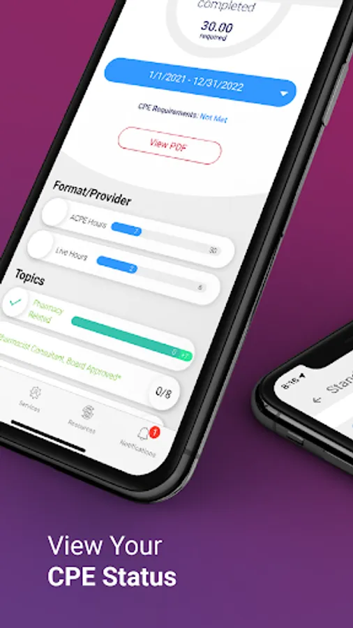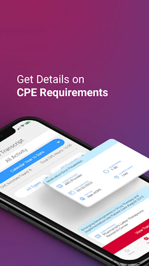 The NABP app gives you quick and easy access to your e-Profile and other great tools to support you throughout your pharmacy career. At-a-glance views of your continuing pharmacy education status let you quickly check for license compliance or take a deeper dive into the details of your CPE to check your Accreditation Council for Pharmacy Education-approved CPE claim submissions. Keep up to date on what’s happening in pharmacy regulation and practice news.