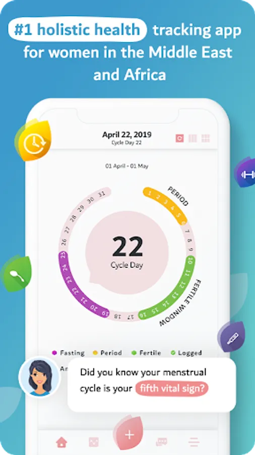 #1 HOLISTIC HEALTH TRACKING app for women in the Middle East, Africa and South Asia.