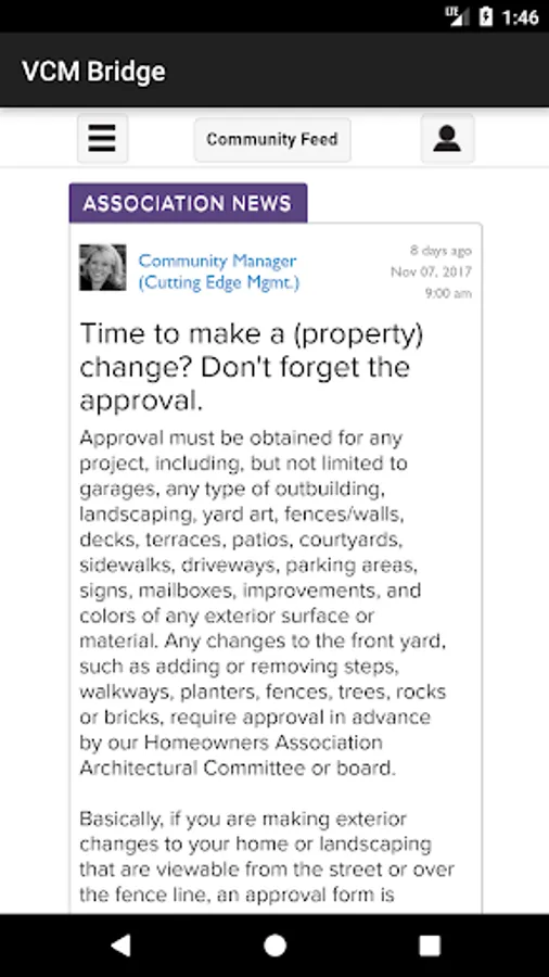 VCM Bridge is a robust communication tool for your neighborhood and is exclusively provided to your community by VCM, Inc., your association’s management company. VCM Bridge can deliver important news, reminders and other information via email, text, web and the VCM Bridge mobile app so you are always in the know.
