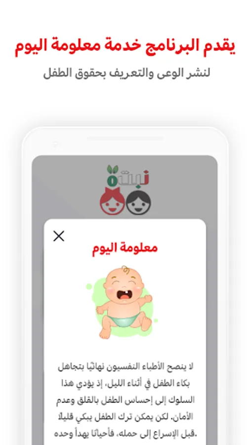 Tawiq was developed for the benefit of the National Council for Childhood and Motherhood in the Arab Republic of Egypt. The application contains important information for both mother and child. It can be used to report children's exposure to danger, report a lost or found child, or book an appointment with council specialists for the mother to obtain counseling. All requests are completed through the call center "Child Helpline" 16000
