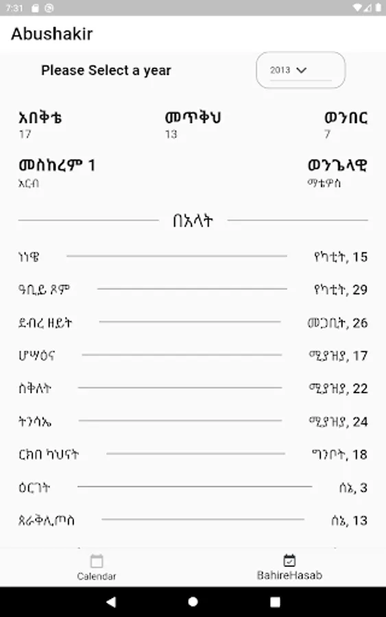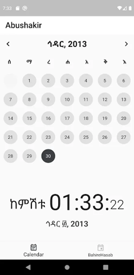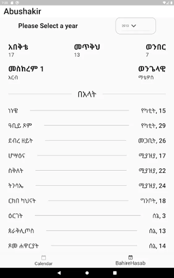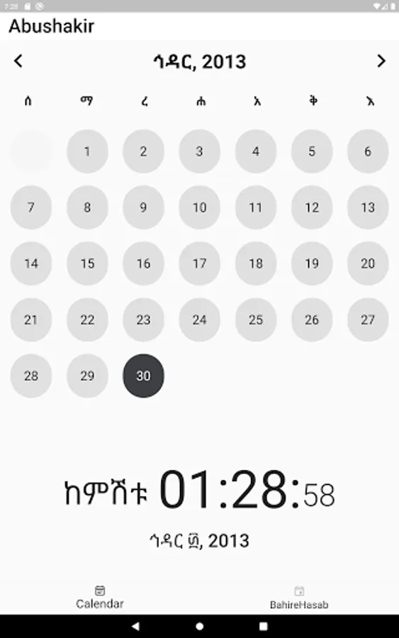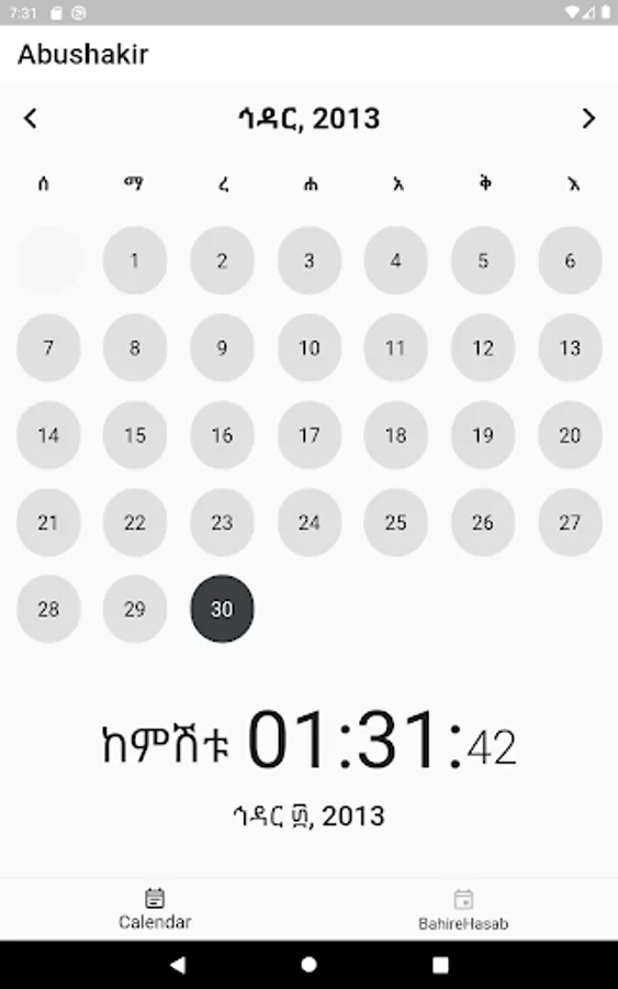 The word Abushakir (ባሕረ ሃሳብ) Bahire Hasab originate from the ancient language of Ge'ez, ( Arabic: Abu Shakir) is a time-tracking method, devised by the 12th pope of Alexandria, Pope St. Dimitri.