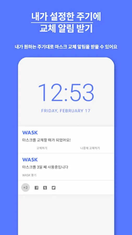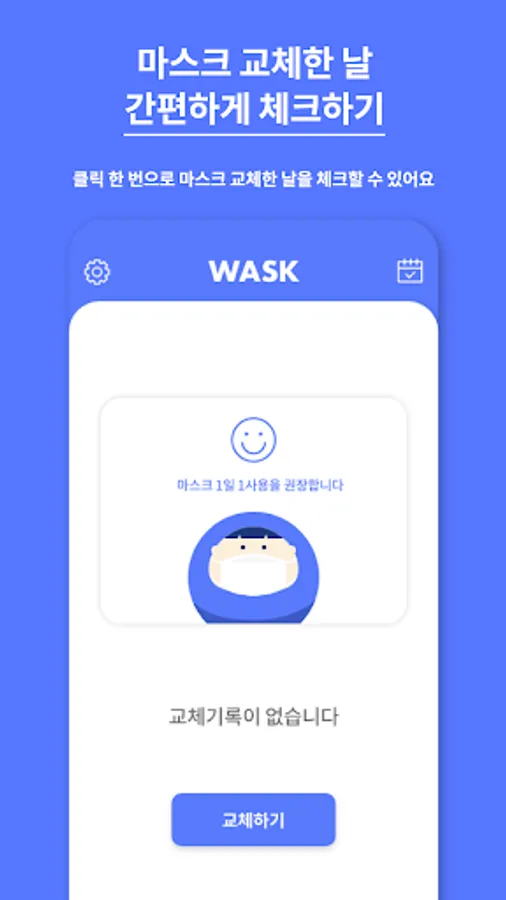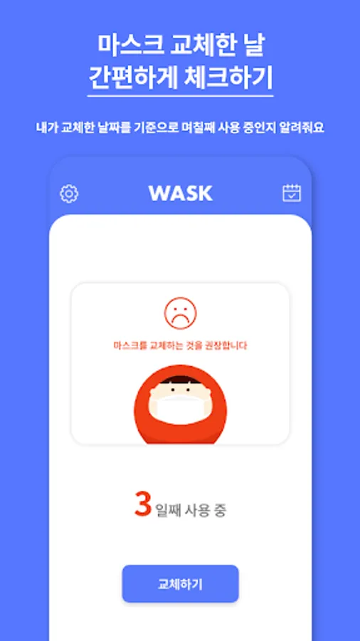 WASK is easy to use. Simply open WASK and tab "Change" whenever you replace your mask! We will remind you every one or two days to change your mask after your first mask replacement. You don't even have to open the app - just tab the button right from the push alert.