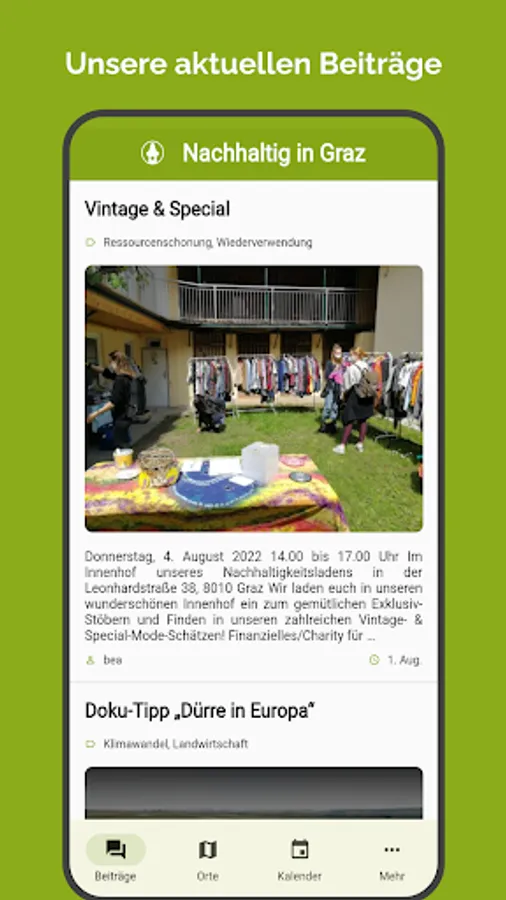 The Sustainable in Graz app is not only a must for new Grazers, but for all people who want to live here in a sustainable and environmentally conscious way. It is - like our website - constantly updated with new data, we are pleased about relevant information and general feedback and will incorporate this as soon as possible.