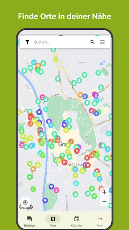 We at Sustainable in Graz (NiG) believe that it should be made as easy as possible for the Grazer to find more sustainable alternatives to conventional offers. With our free app, the search for environmentally friendly businesses, farmers markets, repair companies, thrift stores, open bookshelves, foodsharing fair divisors, urban gardening opportunities etc quickly succeed. In addition, we present Graz initiatives in which you can commit yourself to a livable future.