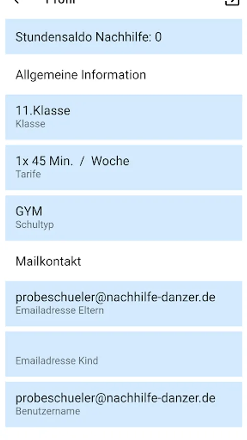 You can also see your customer account and the hourly balance at Nachhilfe Danzer.