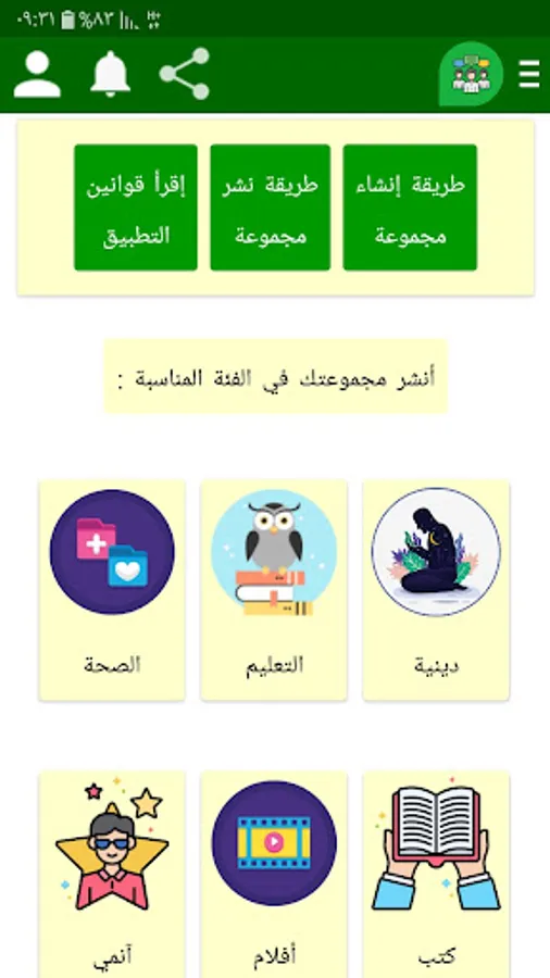1- Publishing new WhatsApp groups: Through the WhatsApp Groups section, users can publish and discover many groups in various fields, and this is a list of areas of WhatsApp groups that can be published and found: