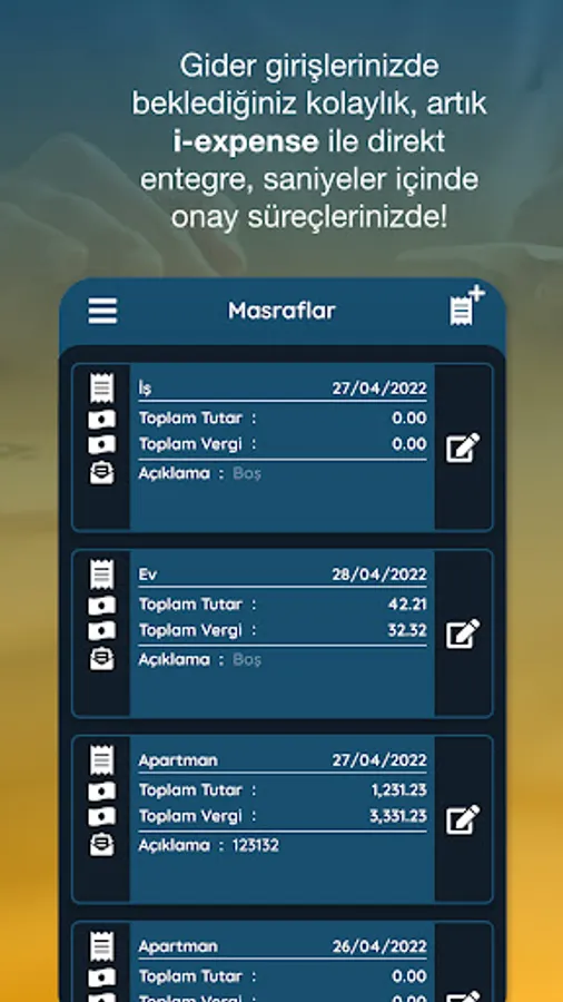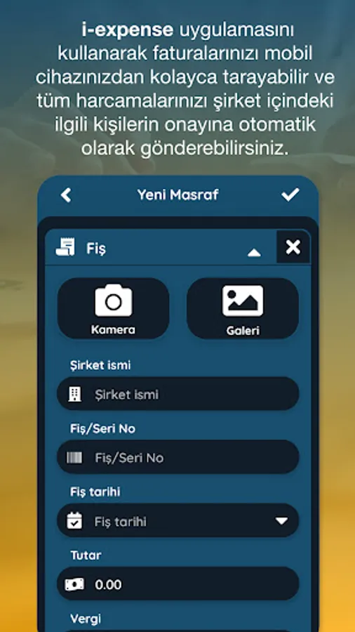 iExpense automatically extracts the expense amount, VAT and total amount information on item basis by taking a photo of the expense documents from any mobile device/mobile phone and selecting them from within the application. After the necessary controls and adjustments are made on the relevant mobile form, the confirmation is sent to the flow quickly and easily with the expense document image attached.