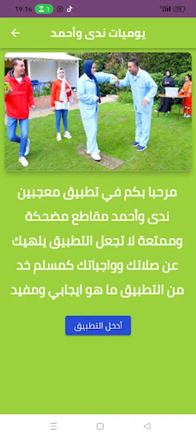 تطبيق يوميات أحمد وندى هو تطبيق موجه للأطفال والعائلات، وهو يهدف إلى تقديم محتوى تعليمي وترفيهي مسلي ومفيد في آن واحد. يتميز التطبيق بأنه يحتوي على قصص تفاعلية مصورة ومعلومات تعليمية وألعاب تعليمية وغيرها من الميزات التي تهدف إلى تنمية مهارات الأطفال وزيادة معرفتهم بطريقة ممتعة.