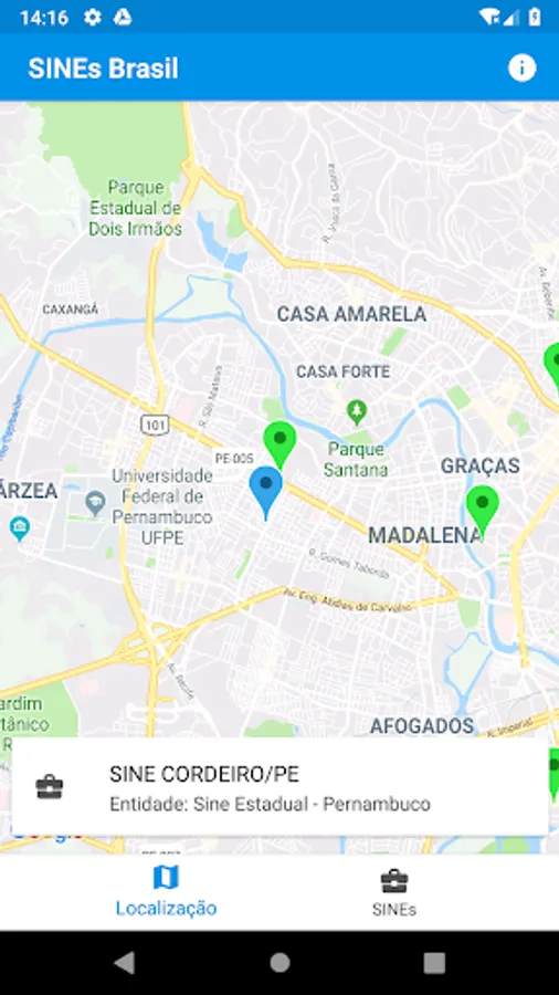 You can filter by state, find on the map and still figure out the route to get to the nearest SINEs and Work Agencies.