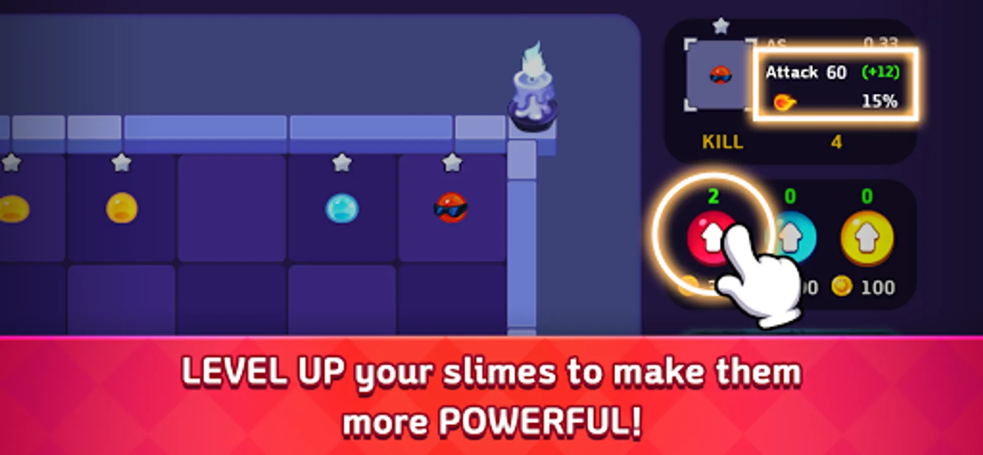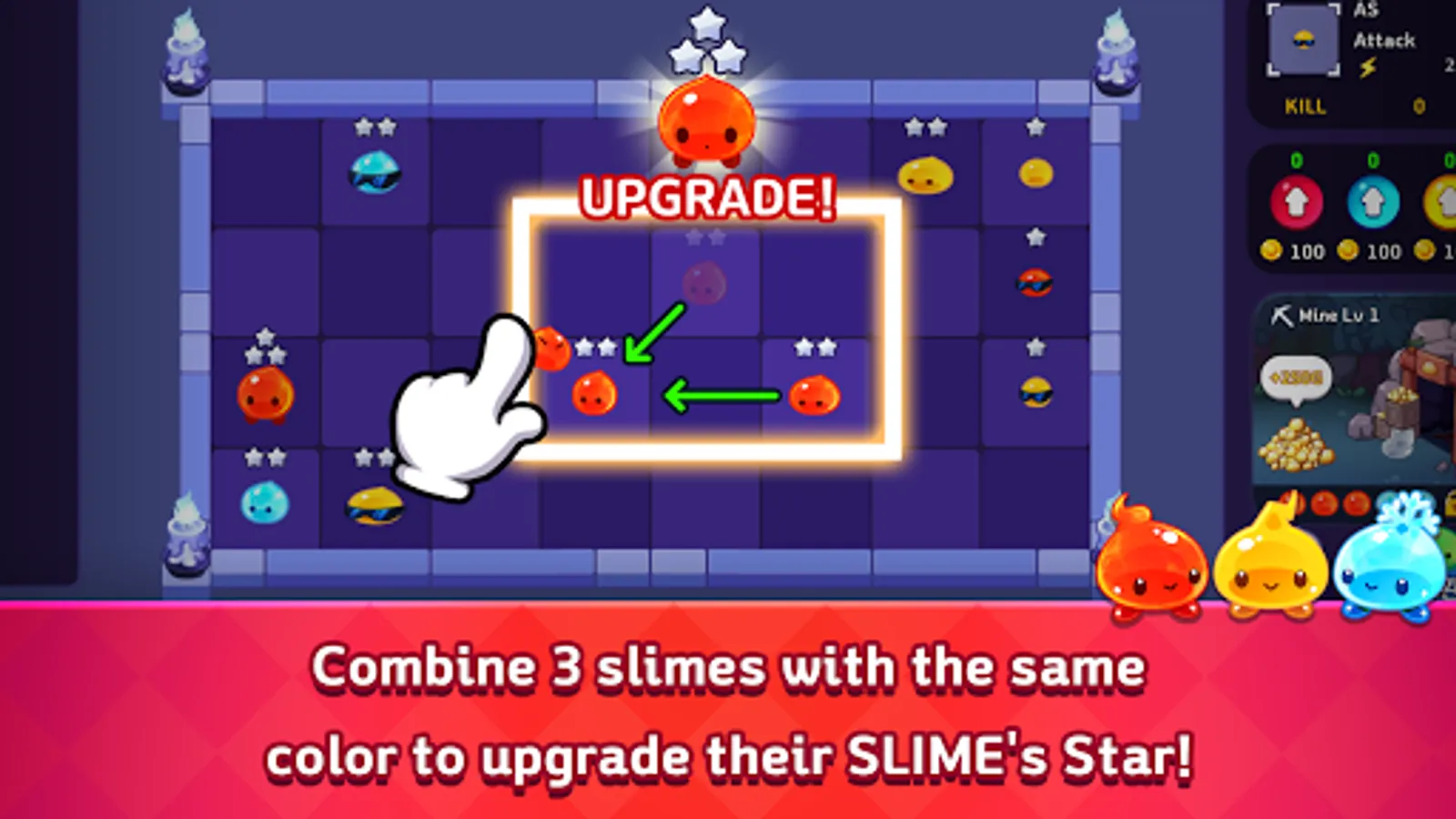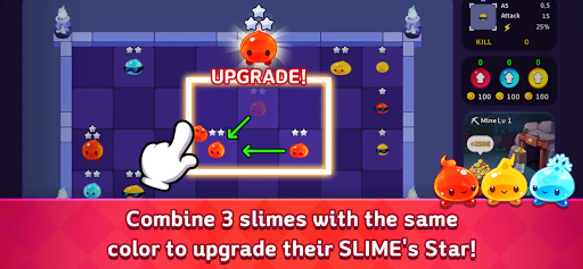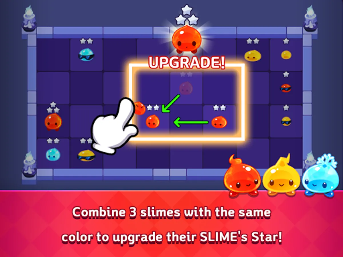 -Combine 3 slimes with the same color to upgrade their SLIME's Star!