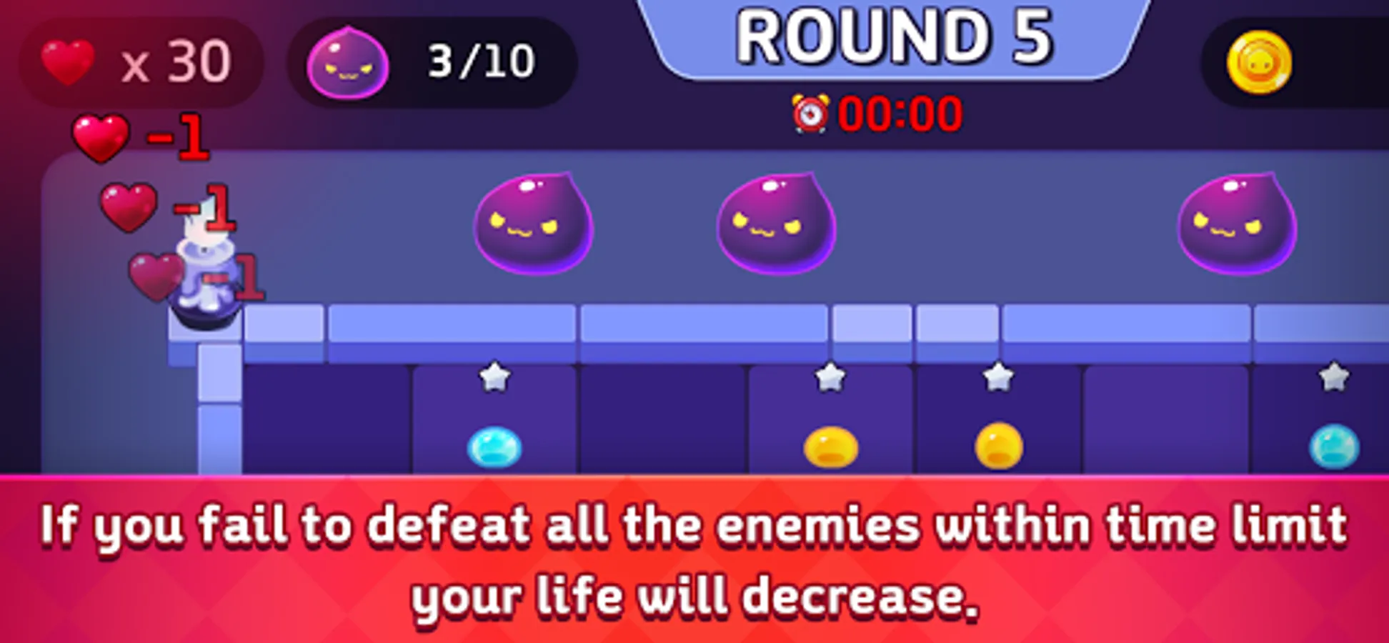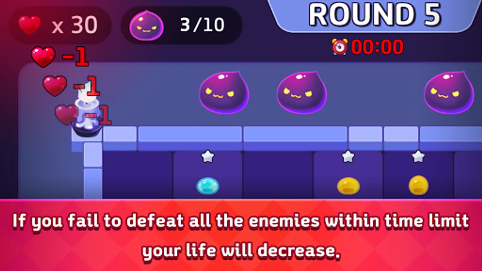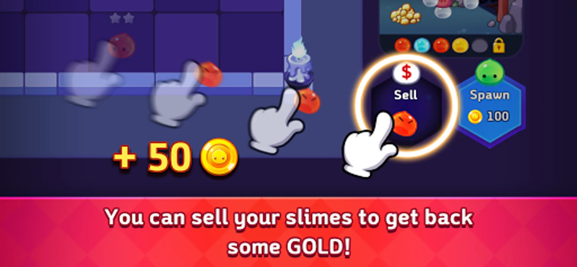 -Combine 3 slimes with the same color to upgrade their SLIME's Star!
