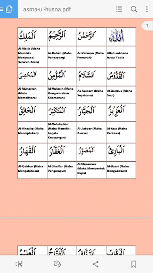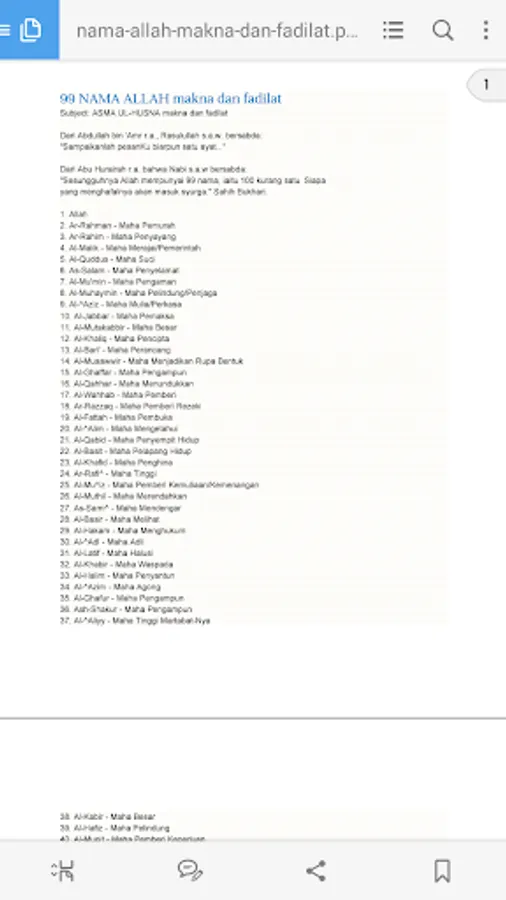 Narrated Abu Huraira: Prophet Muhammad SAW said, "Allah has ninety-nine names, i.e. one-hundred minus one, and whoever knows them will go to Paradise." (Sahih Al-Bukhari 50:894)