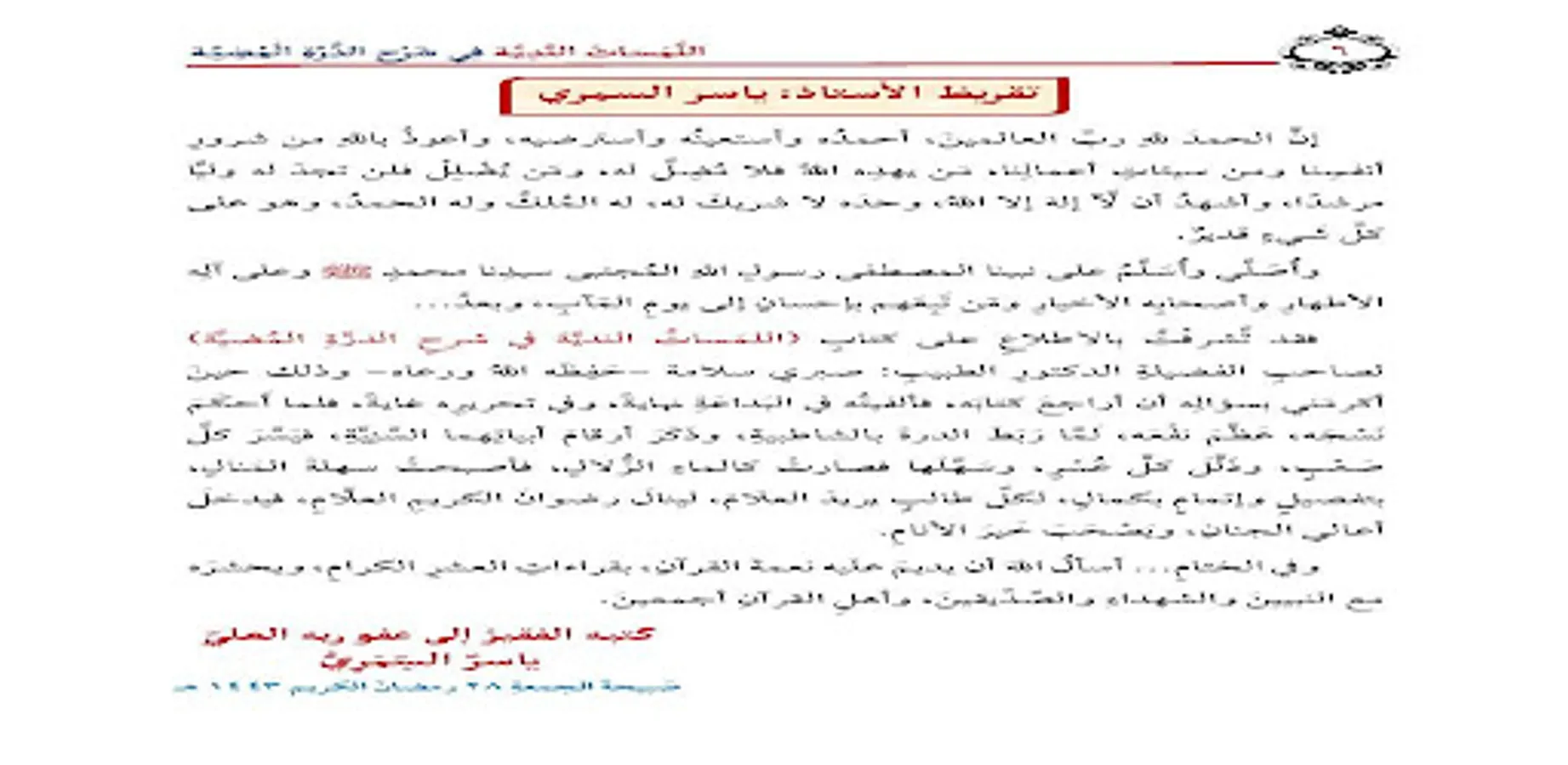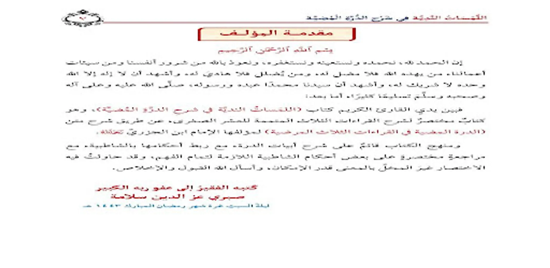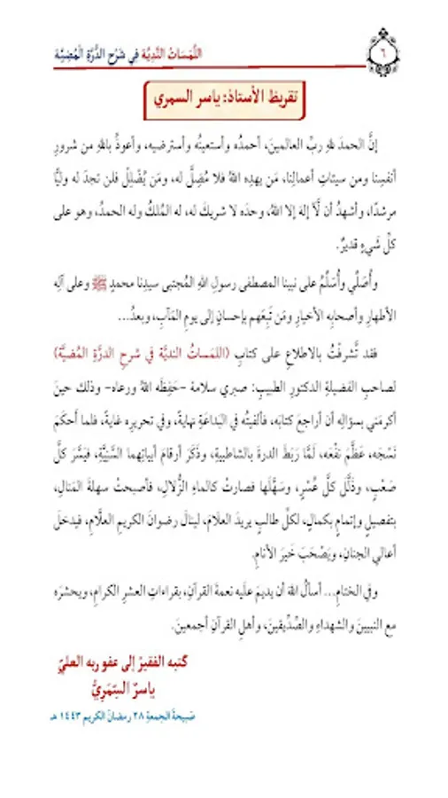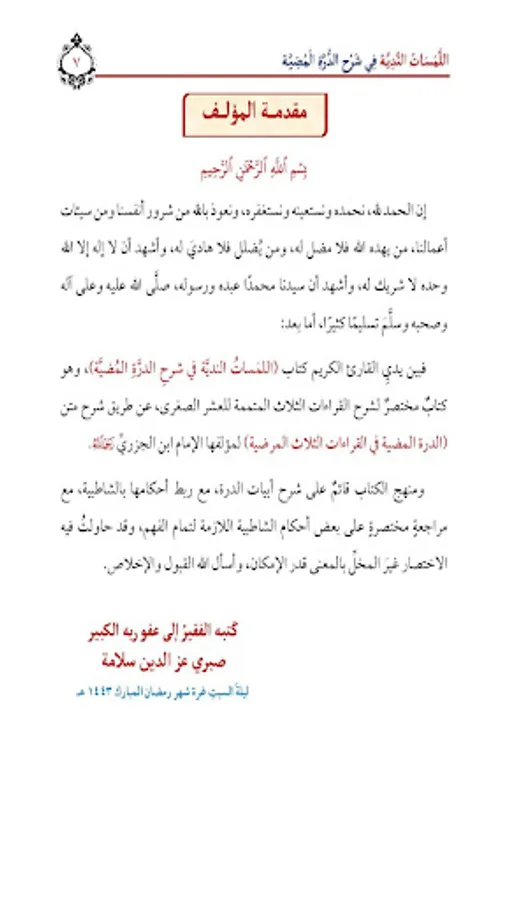 About اللمسات الندية فى الدرة المضية