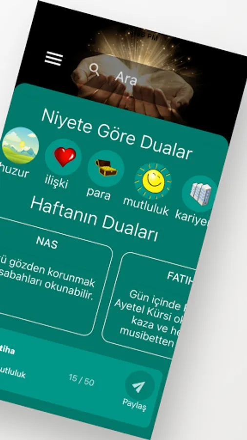 Mycelium contains prayers according to intentions. You can select a random prayer or search for the prayer you want.