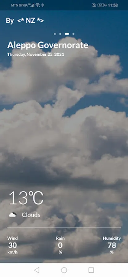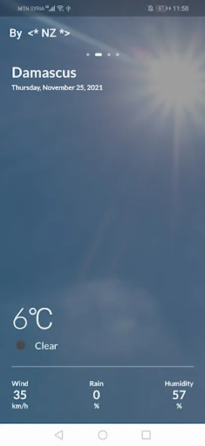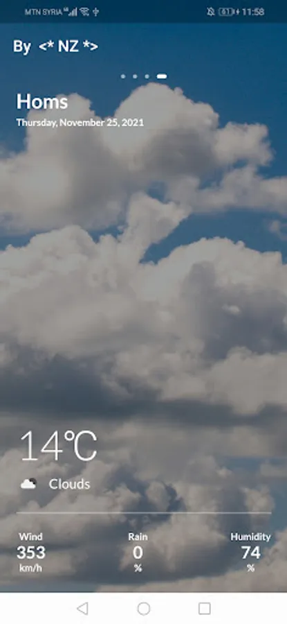 This app provides weather information temp ,description, wind, rain and humidity at the current moment of four major cities in syr country .