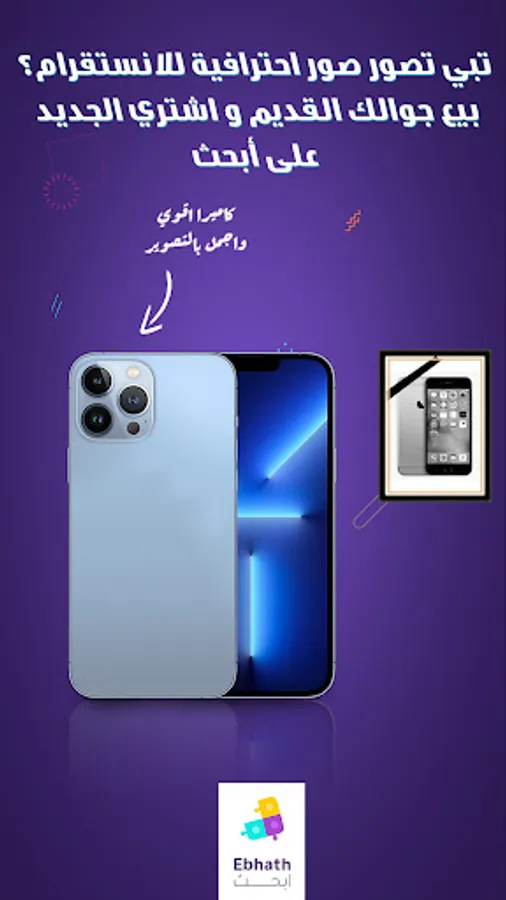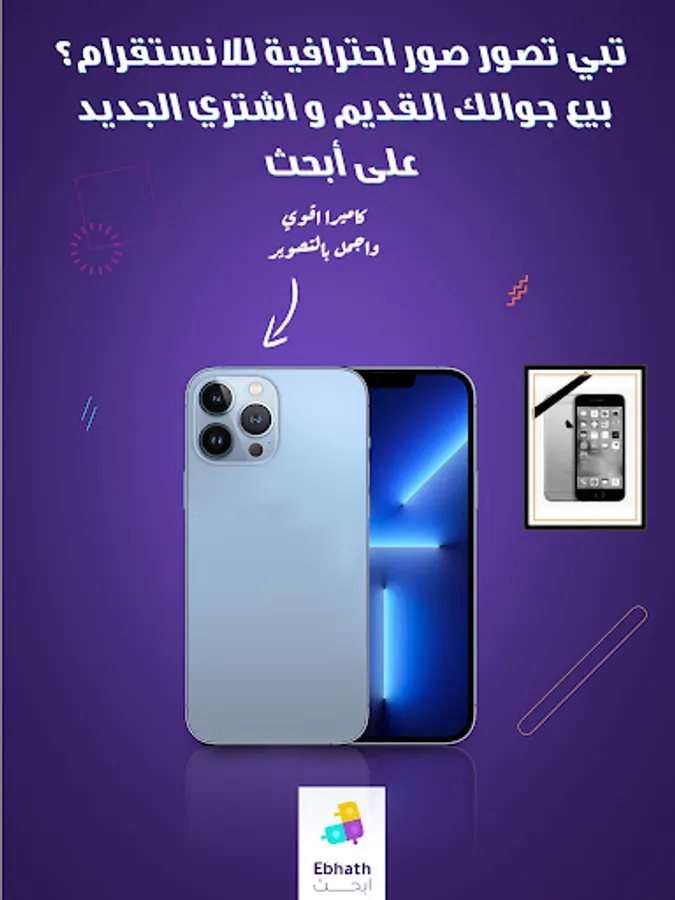 Ebhath is an Application where you can display your old laptop, your used car, or even post an order to rent a furnished apartment. At Ebhath you can sell or buy anything you want. Ebhath, connects seller with buyer and buyer with seller with no one in between.