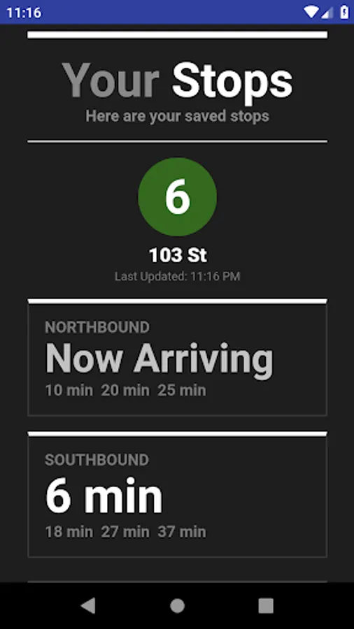 With Now Arriving you can view the train times for all stops across all lines for the MTA. You pick the stations you care about, and they will be saved. Whenever you open Now Arriving, the first thing you will see, are the times for the stations you have selected. Making this the quickest and most efficient way to get the information you care about.