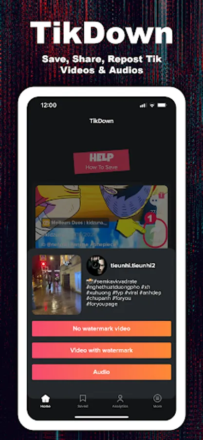 With Tiktok Downloader app - download video tiktok with no watermark and Audio, you donβt need to log in. Just copy the link or share the link of the video and then you download task will automatically start. It is super easy and fast when download video tiktok no watermark.