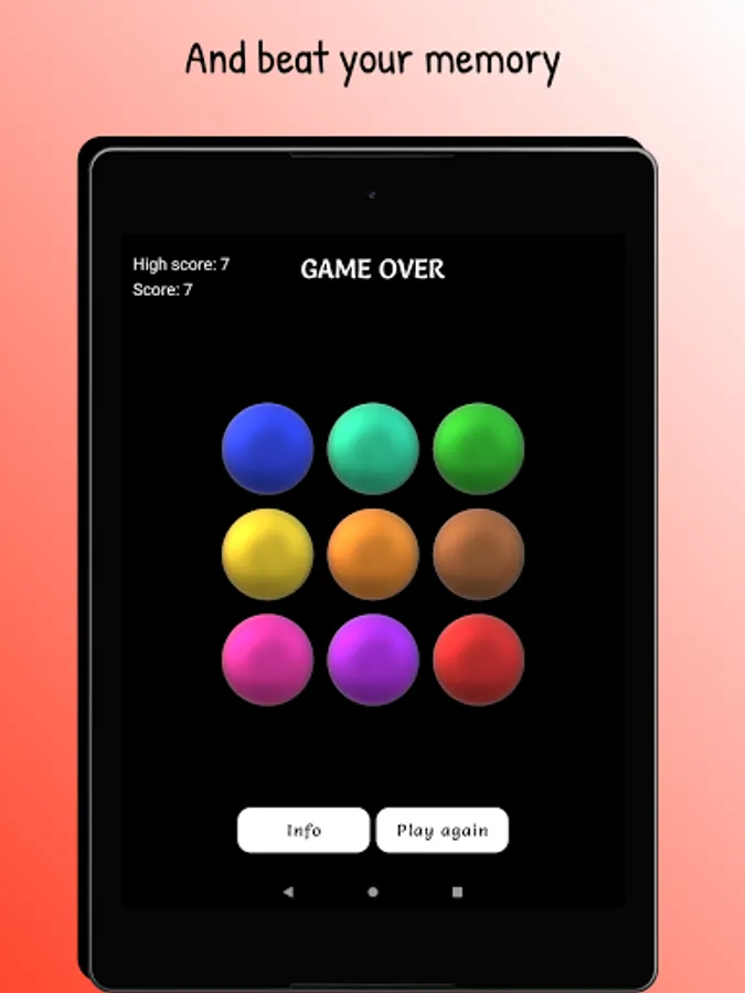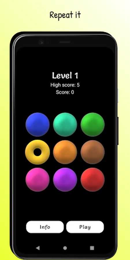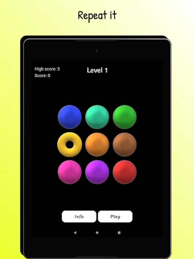 Watch the buttons light up and repeat the exact same pattern. With each level completed, the pattern increases with an extra move.