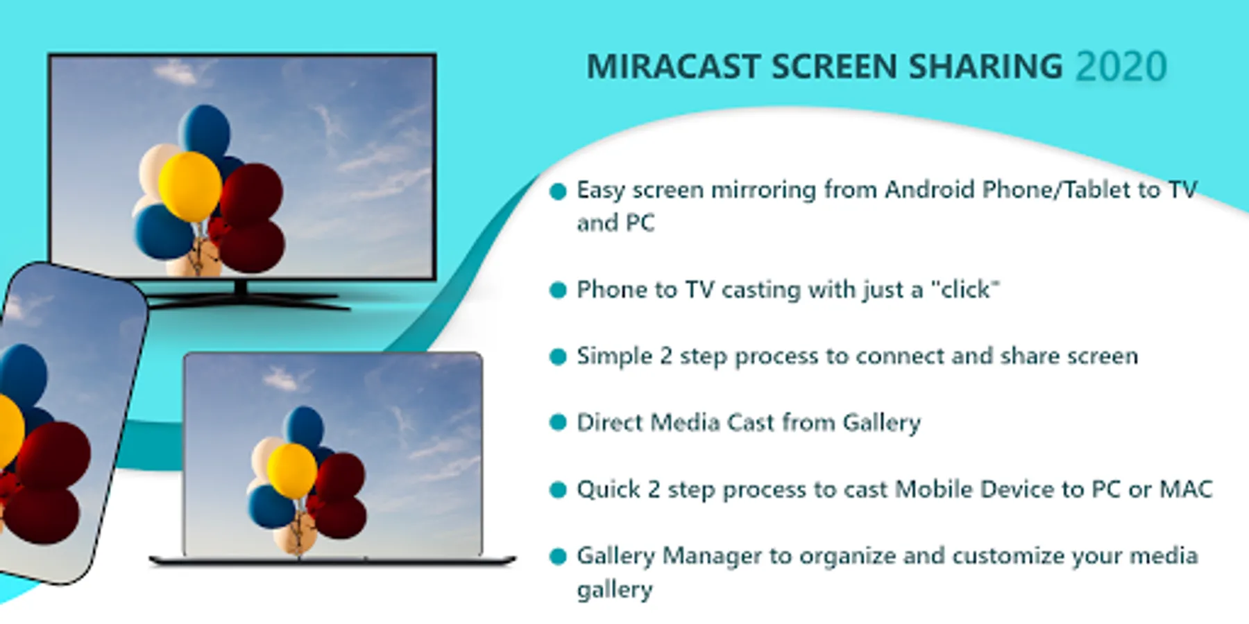 Miracast Screen sharing App will provide an option to share Android phones screen on to smart TV or Wireless Display devices or Mircast enabled dongles.