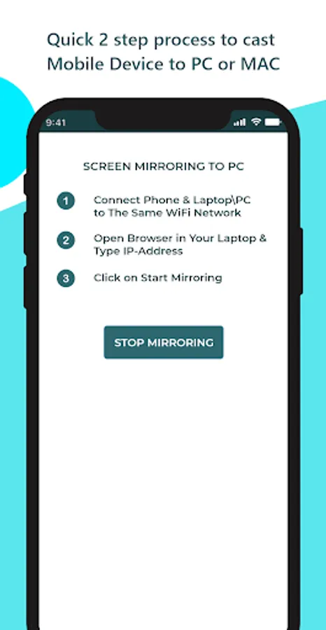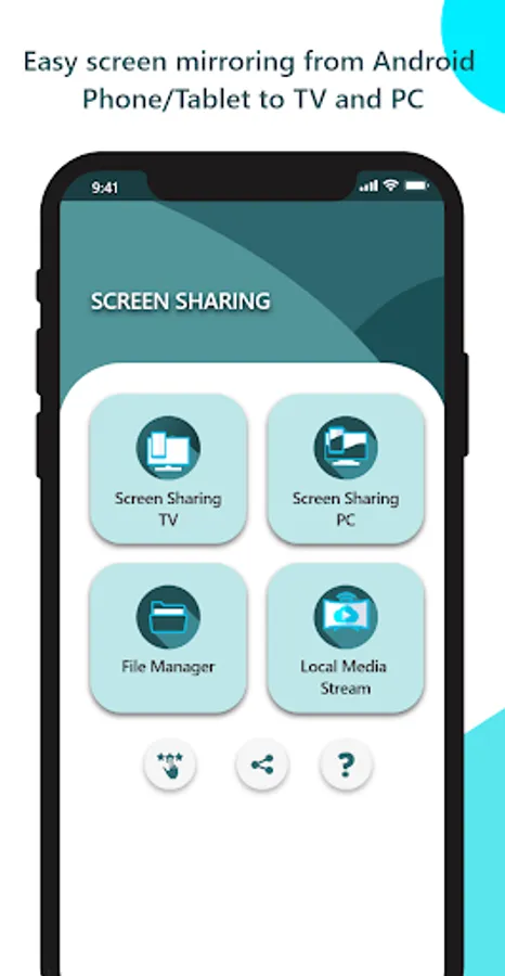 This App simplifies the process to One Click of a button to launch the mircast service on the Phone which in turn searches the near by Smart TV or Wifi Display or display connected to Mircast dongle such as EZcast. After your device discovered you can start the screen sharing.