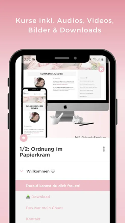 For all course participants, the app offers the ideal opportunity to download the course & watch it offline, but also to exchange ideas with other course participants and ask questions after each step.