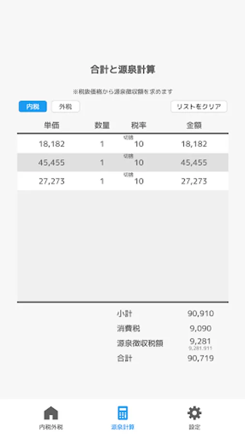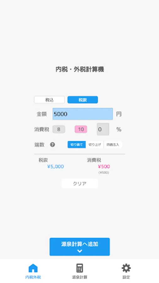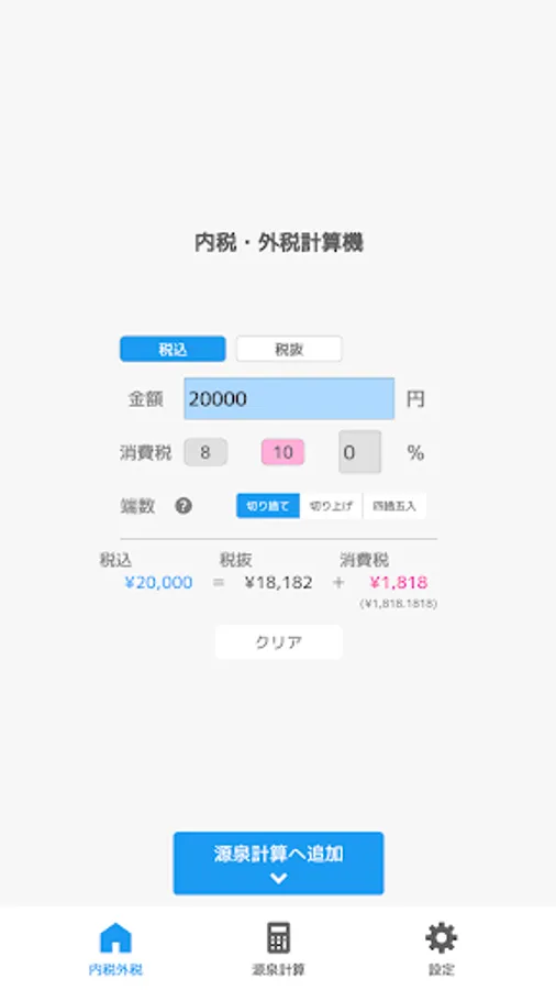 It is an application that can calculate the tax amount of tax included and tax excluded, tax excluded / tax included, and also withholding calculation.