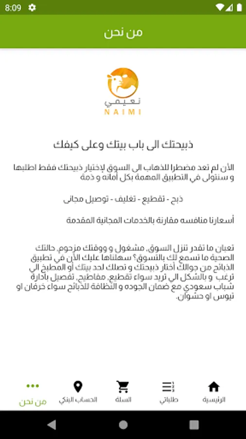 An application that serves the customer by providing all the carcasses in the refrigerator, rest, banquets, large events, and delivery service to the place requested by the customer, with clean and equipped cars, we have slaughtering, cutting, packaging and delivery according to the customer's desire