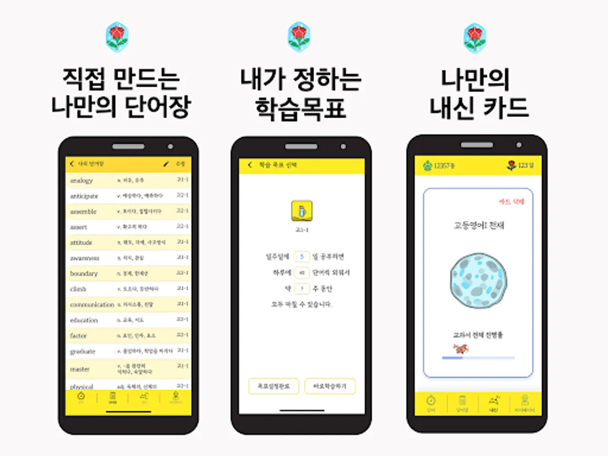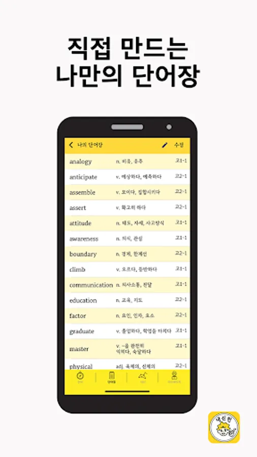 - A vocabulary book where the amount of learning per day is saved, and a permanent vocabulary book that I can edit myself