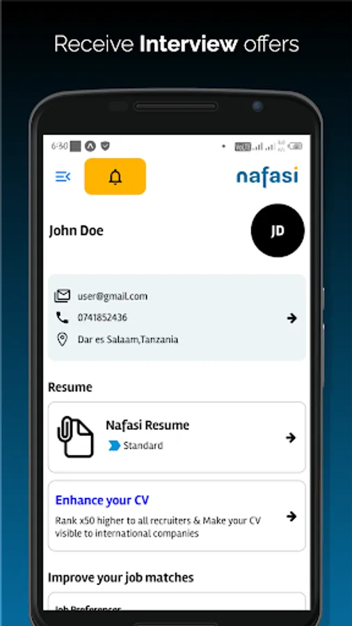 Register and provide a few details about yourself, your job preferences, and your skills. In a matter of minutes, Nafasi will send your professionally crafted resume directly to top recruiters and employers with shortlisted jobs matching your profile.