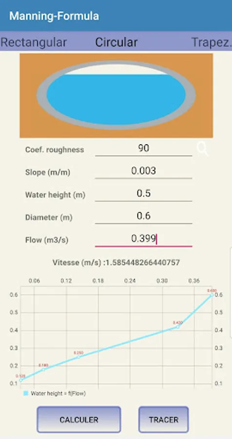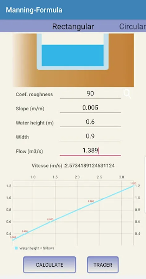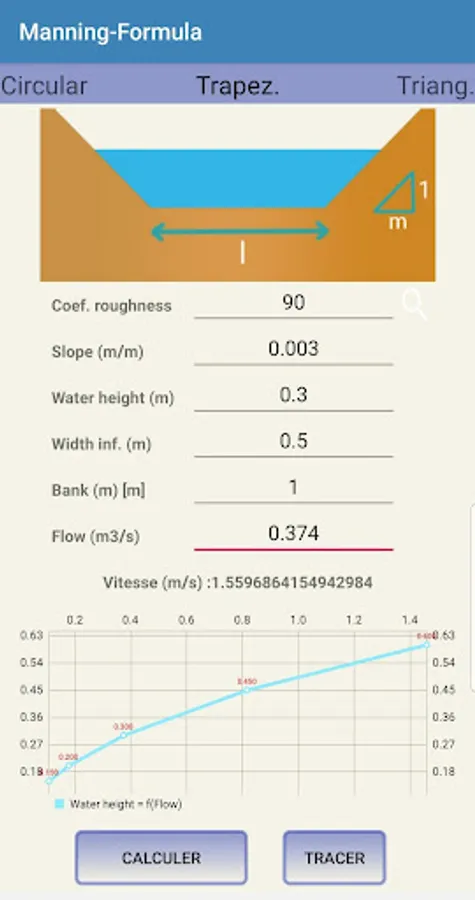 The Manning formula is an empirical formula estimating the average velocity of a liquid flowing in a conduit that does not completely enclose the liquid, i.e., open channel flow. However, this equation is also used for calculation of flow variables in case of flow in partially full conduits, as they also possess a free surface like that of open channel flow.