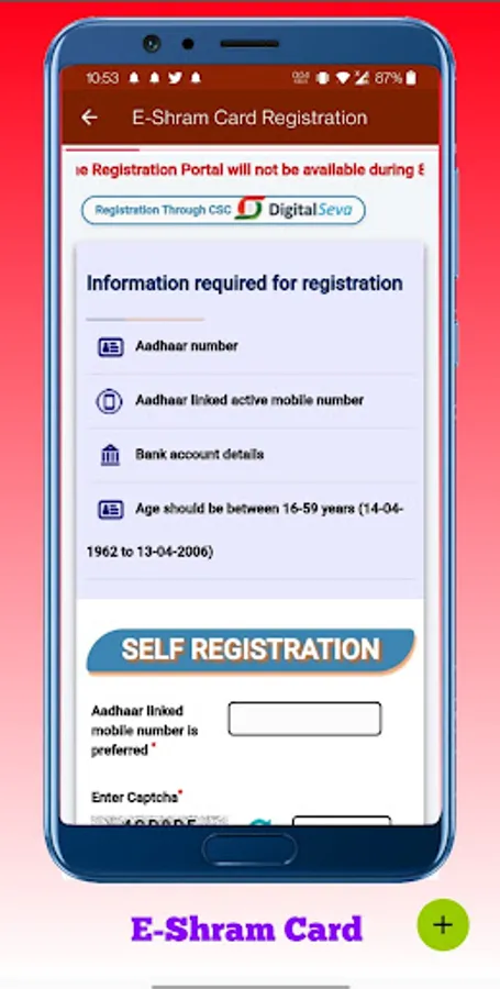 * This APP is NOT associated, affiliated, endorsed, sponsored or approved by E-Shram ( https://eshram.gov.in/ )