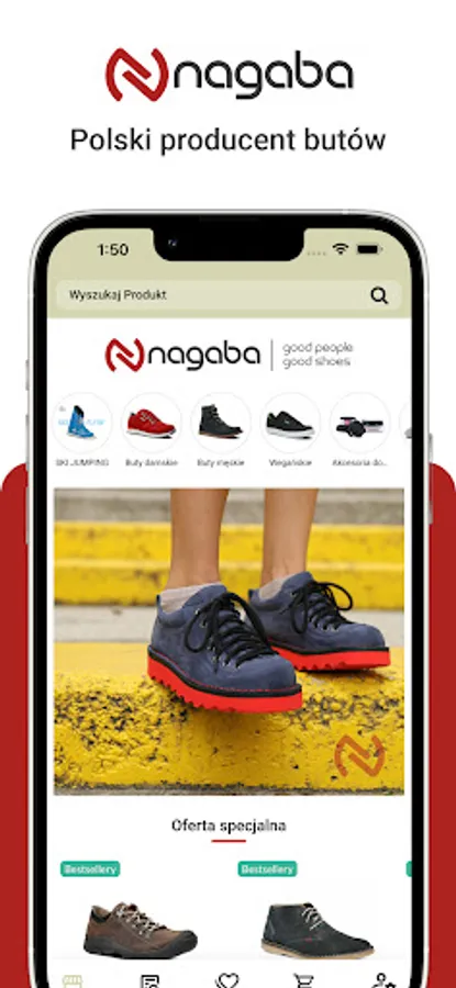 Download App Nagaba. The best shoes. Proven quality. Great promotions. Only for you.