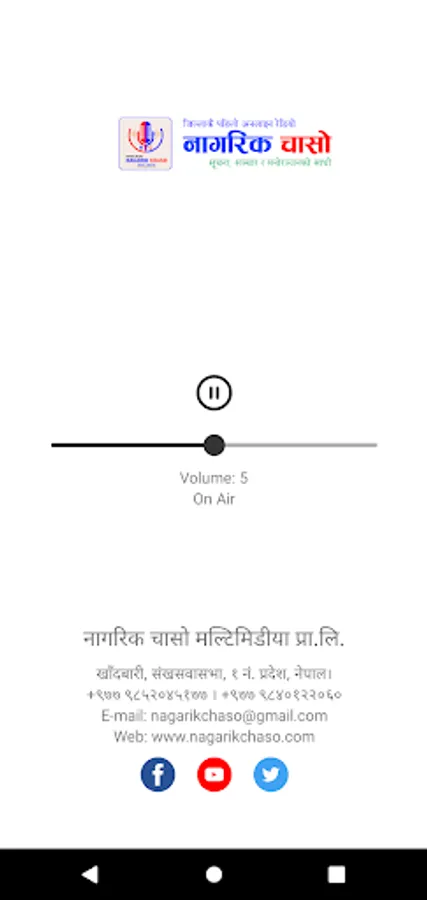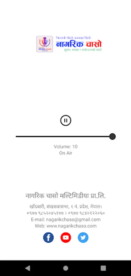 A live radio app keeping in view, the interest and desire of the common people of Nepal, who are undergoing change along with the development of technology. For the identification and solution of the problems faced by the common citizens, for the truth, facts and fair information and for the communication, corruption, irregularities in the society, including the common citizen's interest.