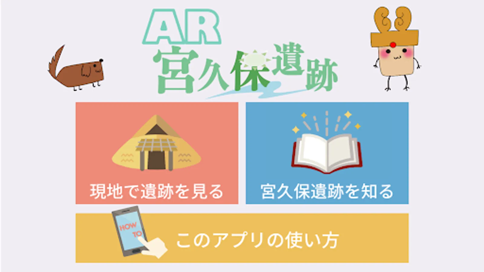 This app is an app that introduces the Miyakubo archaeological site, which is one of the many archaeological sites scattered in the Mekujiri River basin that flows through Ayase City, Kanagawa Prefecture. The Miyakubo site was a place where people continued to live, receiving the blessings of the Mekujiri River throughout its long history, including the Old Stone Age, the Jomon Period, the Yayoi Period, the Nara Period, and the Kamakura Period. It is an interesting archaeological site where people's lives changed in each era and it remained well. Currently, it is Ayase Nishi High School.
