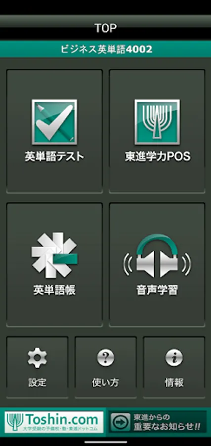 This is an English word app dedicated to Toshin Business School to master important English words that are often used in the business scene "fastest" and "completely". We handle carefully selected English words that are also given in the TOEIC test. With 40 STAGE configurations, they are arranged in order of importance from STAGE 01, so you can learn in order from the most important word.