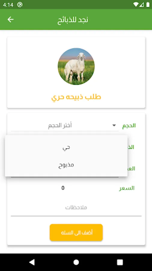 من خلال تطبيق نجد للذبائح تضع طلبك