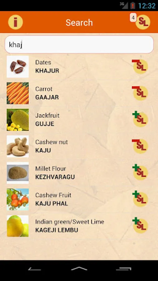 Using this app you can quickly search for Indian groceries in any language. You can search for spices, vegetables, fruits, cereals, flours, pulses, and nuts. e.g. Jeera, Lavangam, Rajma, Aaloo, Namak, Badam, Sapota, Khajur etc.