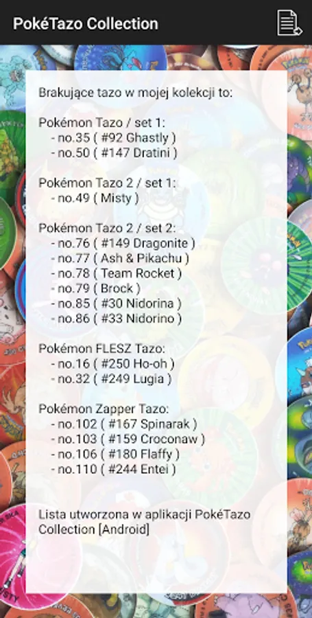 App for collecting Tazos which were added in crisps in 2000-2002 in Poland.