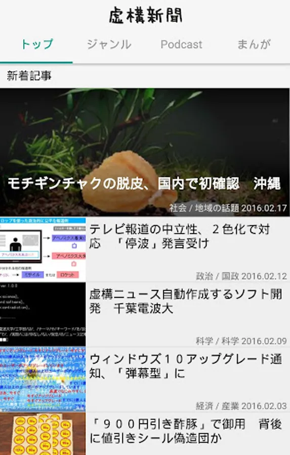 2004年開設の嘘ニュースサイト。同年雑誌「ネットランナー」の「テキストサイト・日記部門」で金賞を受賞。2012年、第16回メディア芸術祭エンターテインメント部門審査委員会推薦作品。「週刊アスキー」(2012年〜2015年)、タイ・バンコクの日本人向けフリーペーパー「DACO」に虚構記事を配信。その他新聞、テレビなど各種メディアでの紹介多数。インターネットの普及に伴って、メディアリテラシーの教材として言及されることも増えている。