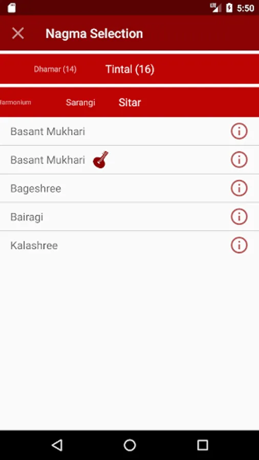 • Chose your instrument: sarangi, harmonium, and sitar