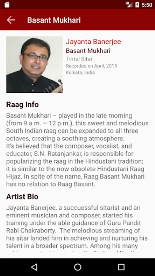 • Several taal options: Tintal, Rupaktal, Jhaptal, Ektal, Dhamar