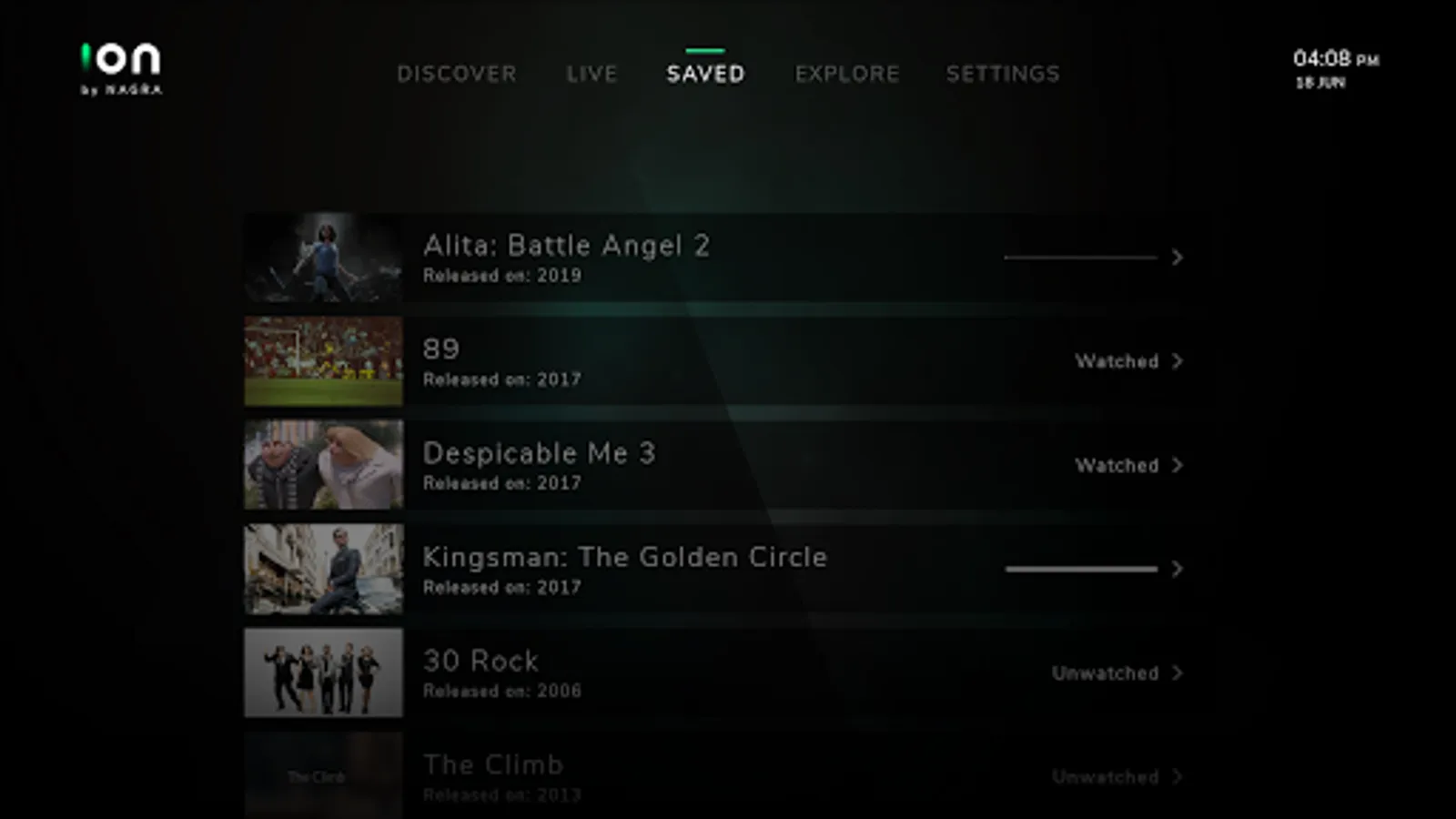ION showcases the content held on Nagra's OpenTV Video Platform. It allows the user to view both linear and VOD content with all the functionality expected in todays modern video distribution applications.