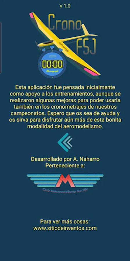 This application was initially intended to support training for the F5J modality, although some improvements were made to also be able to use it in the timing of our championships. I hope it will help you and help you enjoy this beautiful modality of model airplanes even more.