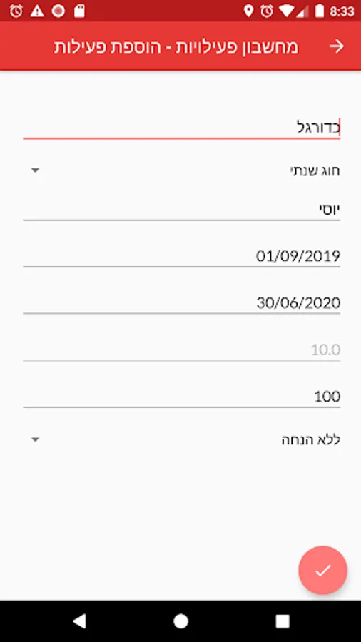 Calculator for activities purchases in community centers