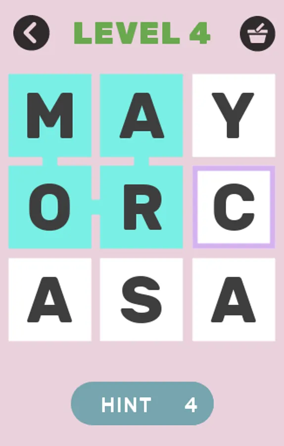 To pass each level you must find all the words hidden in a sea of letters.