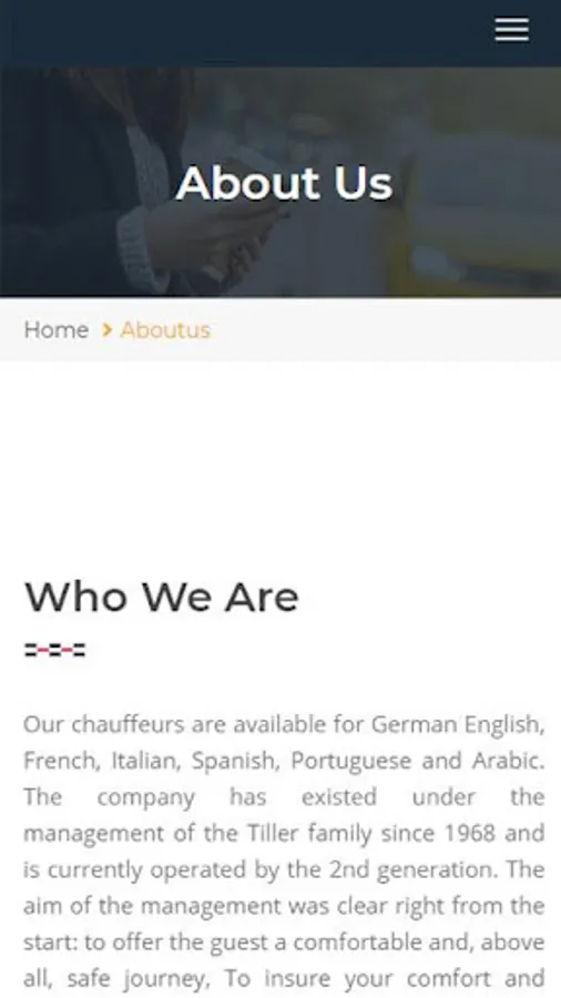 Our chauffeurs are available for German English, French, Italian, Spanish, Portuguese and Arabic. The company has existed under the management of the Tiller family since 1968 and is currently operated by the 2nd generation. The aim of the management was clear right from the start: to offer the guest a comfortable and, above all, safe journey, To insure your comfort and safety our vehicles are renewed every two to three years at the latest in order to be state of the art........ Your limousine is already waiting for you! We ignite opportunity by setting the world in motion Good things happen when people can move, whether across town or toward their dreams. Opportunities appear, open up, become reality. What started as a way to tap a button to get a ride has led to billions of moments of human connection as people around the world go all kinds of places in all kinds of ways with the help of our technology. Rides and beyond In addition to giving riders a way to get from point A to point B, we're working to bring the future closer with self-driving technology and urban air transport, helping people order food quickly and affordably, removing barriers to healthcare, creating new freight-booking solutions, and helping companies provide a seamless employee travel experience.