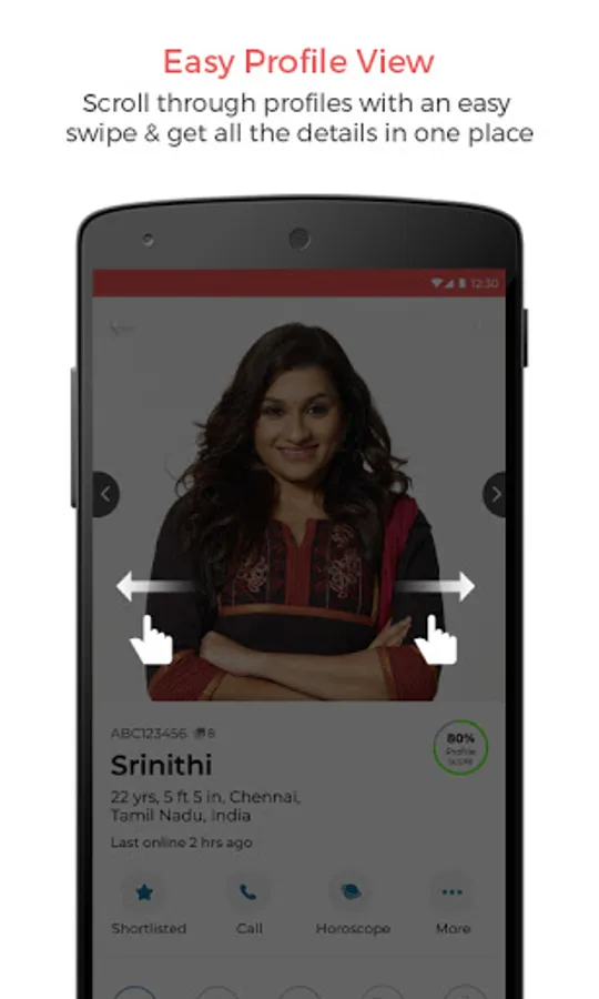 • Access complete profile information like Educational institute, Company and Horoscope/ Jathakam.